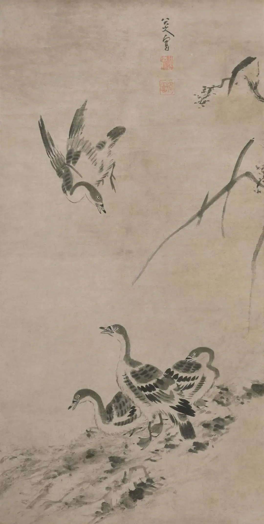 朵云轩收藏的《芦雁图》清 八大山人 纵120厘米 横60厘米 纸本水墨