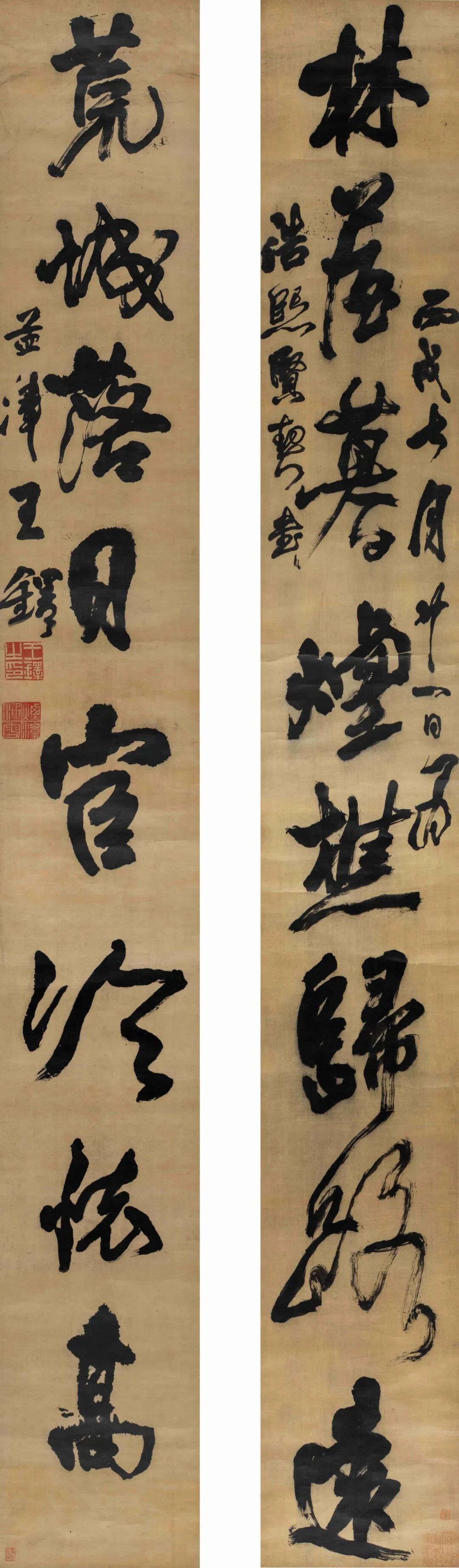 《为浩熙贤契书八言联》明 王铎 纵302厘米 横38厘米 绫本水墨配资头条官网