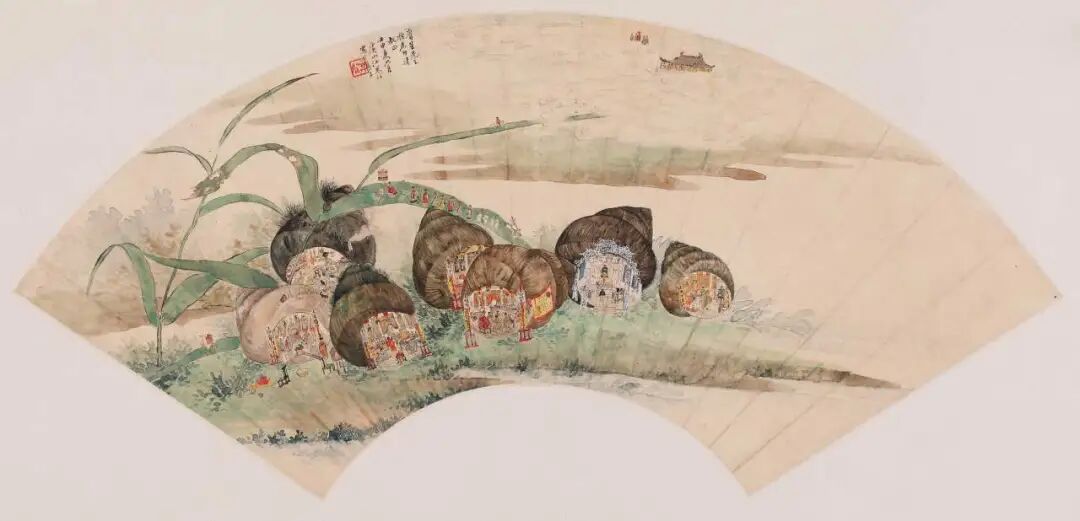《螺蛳壳里做道场》近现代 江寒汀 纵25厘米 横52厘米 纸本设色