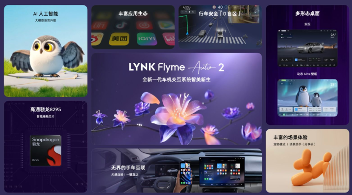 智能座舱部分,全新领克 07EM-P 搭载骁龙 8295 芯片与 LYNK Flyme Auto 2 系统。AI 语音助手可识别模糊指令,具备情绪感知能力,能以儿童口吻与孩子对话,提供情感关怀与知识科普。同时,座舱系统整合手车互联与 95 英寸 AR-HUD 功能,支持无线投屏及 PS5、Switch 外接,将座舱从功能空间升级为具备情感互动能力的 “AI 伙伴”。