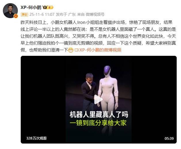 在“2025小鹏科技日”上,小鹏全新一代IRON亮相,并展示了猫步般轻盈的步态。随后,有不少网友质疑,称“感觉是个真人在努力扮演机器人”。